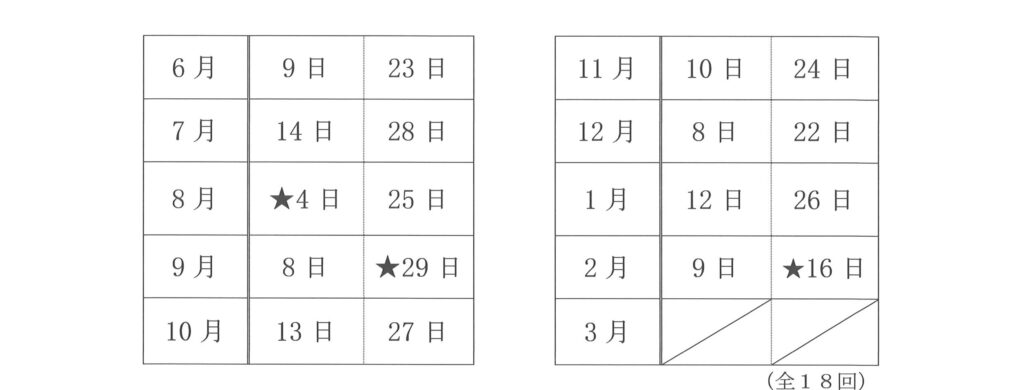受講生の目標 ・パッチワークキルトの技術向上を目指し、受講生同士の楽しみ、仲間との親睦を深めましょう。 教室の詳細 日 時:第2・4火曜日 午前 10時〜12時定 員:24名場 所:シルバーワークプラザ(最寄り駅 千里山駅) 3階 大会議室 持ち物:裁縫道具、筆記用具、紙切りバサミなど。各自で用意。教材費:1作品につき、2,000円~3,500円程度の教材費が必要。 令和8年度授業予定日